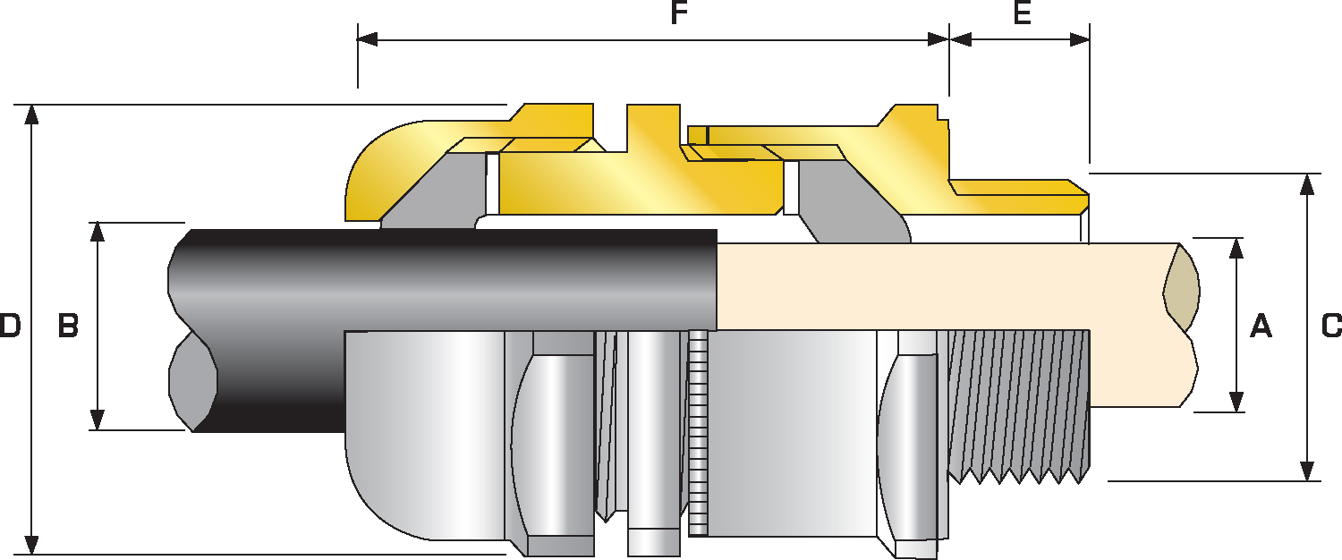 РазмерКабельноговода Доступные типы резьб "C" (возможен выбор другой длины резьбы (метрическая система)) Наружныйдиаметркабеля“а/в” Расстояние между противоположными гранями "D" Расстояниемеждупротивоположнымиуглами“D” Длина выступа "F" Общий код заказа (*латунь, метрическая система) Защитный кожух Вескабельноговода(унции)